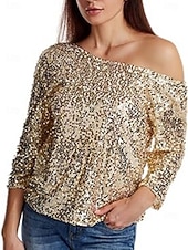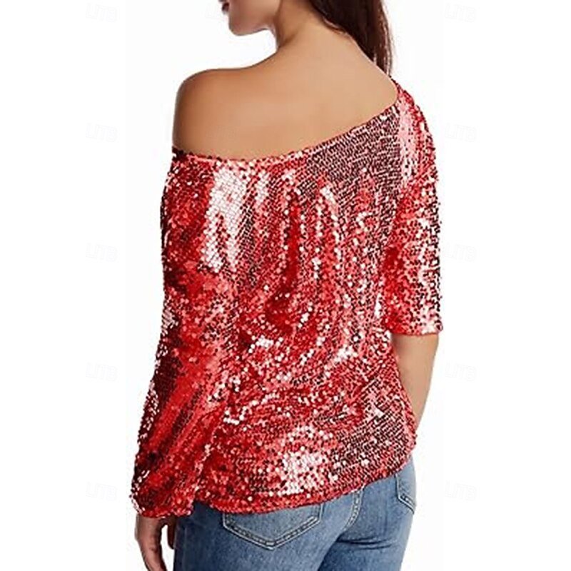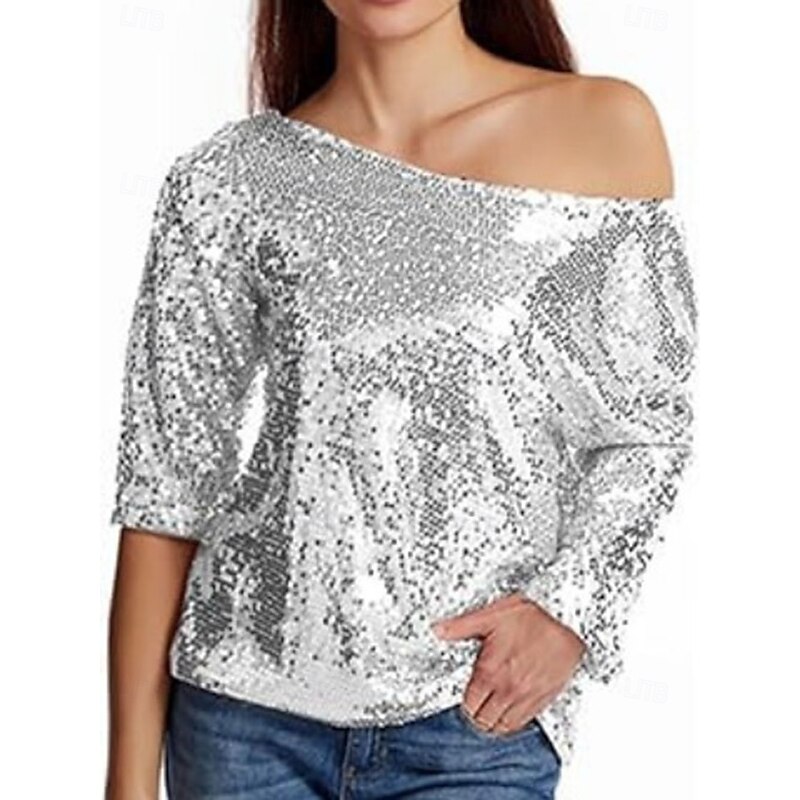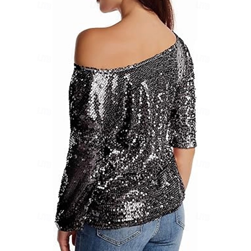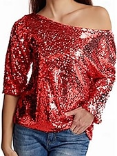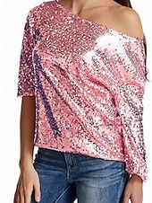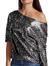 More information about Women's Sequin Sparkly Party Glitter Sparkly sleek Long Sleeve Cold Shoulder Regular Tops Daily Holiday Sequins Silver Black Pink Wine Gold Spring Fall