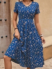 Why Choose Women's Midi Dress Floral Dress Print Dress iconic new-age Outdoor Vacation Holiday Regular Fit Flower Short Sleeve V Neck Black Royal Blue Brown Green Summer?