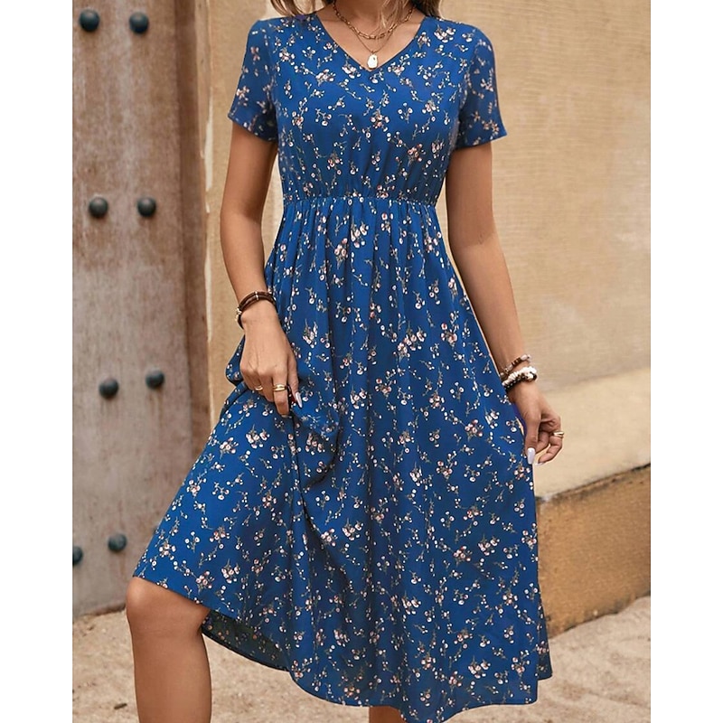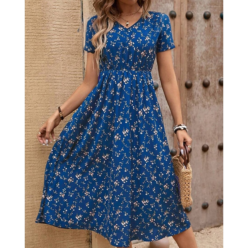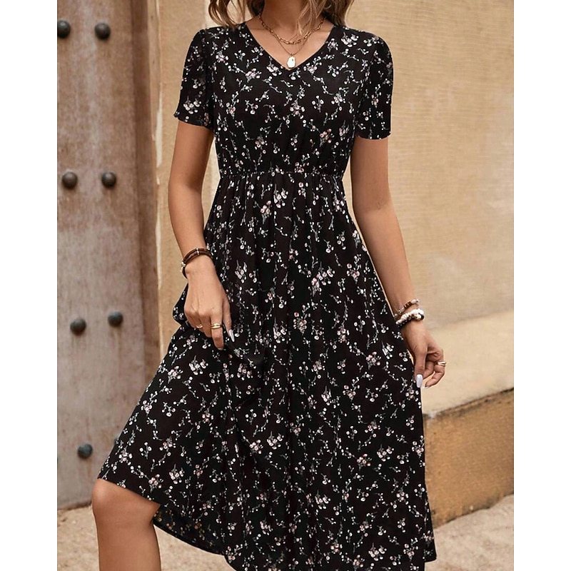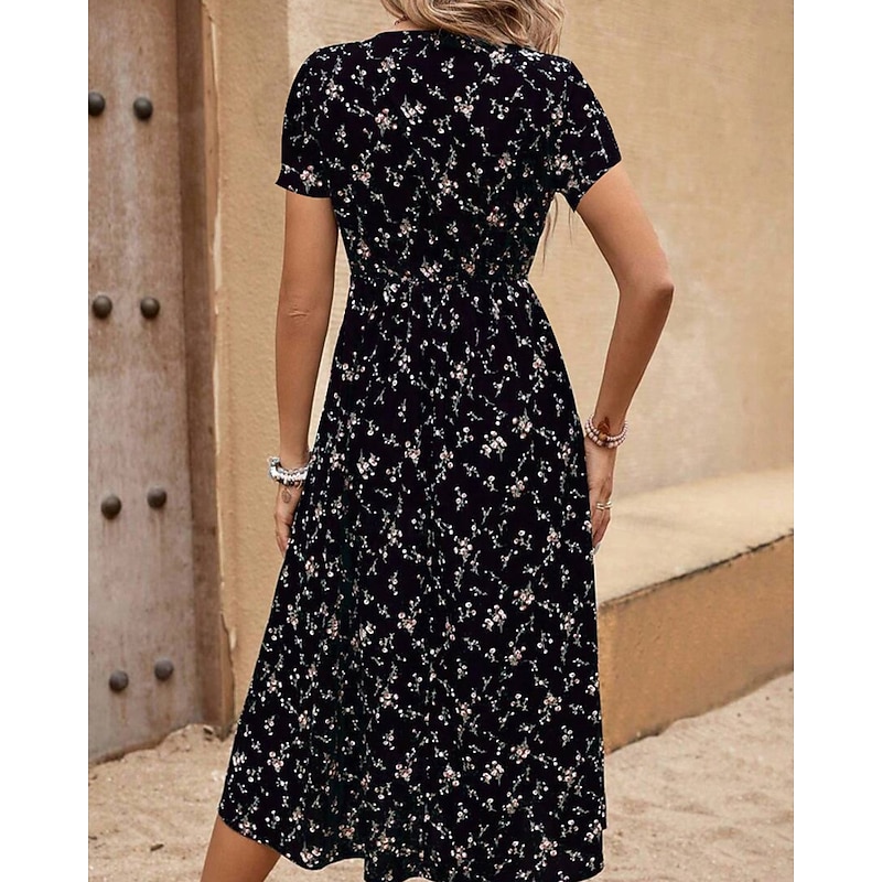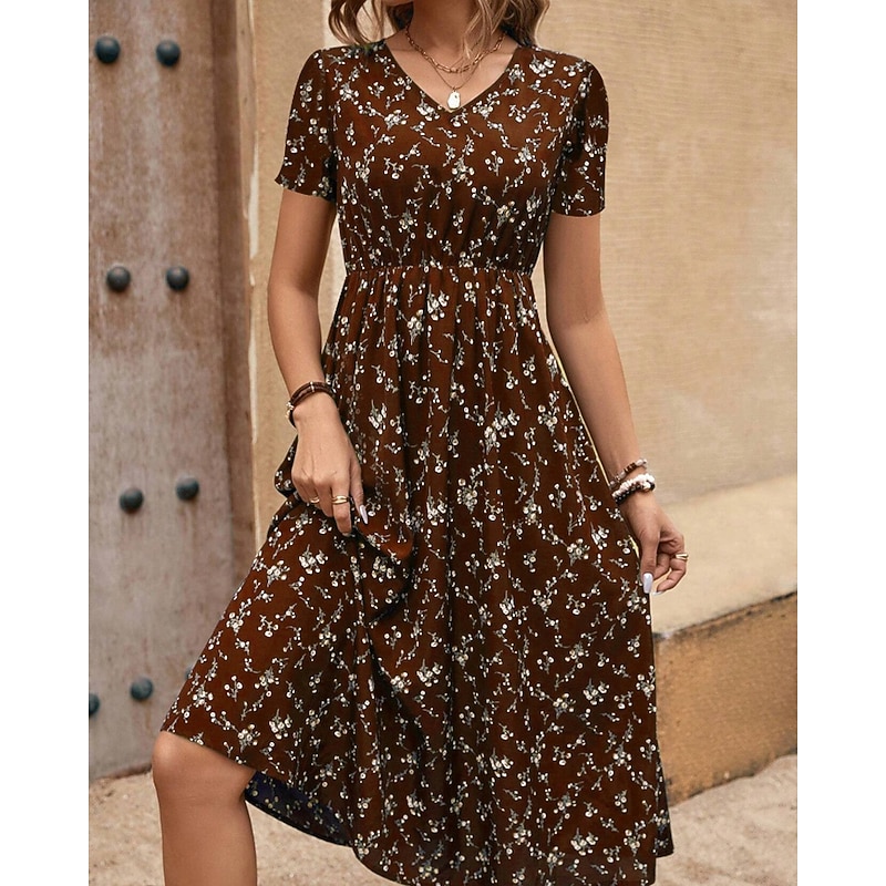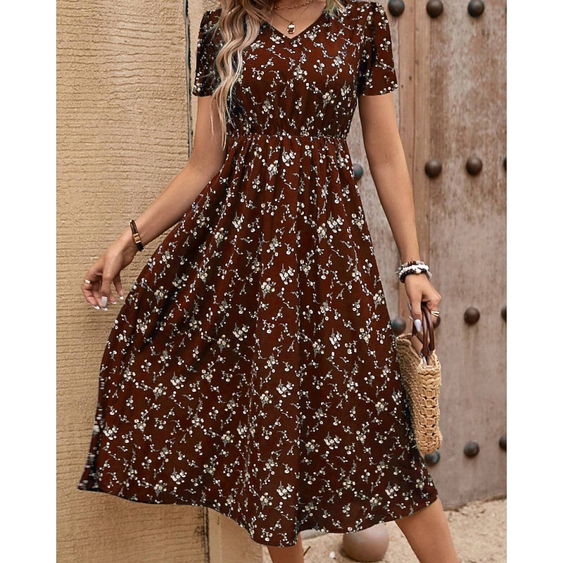 This Women's Midi Dress Floral Dress Print Dress Classic new-age Outdoor Vacation Holiday Regular Fit Flower Short Sleeve V Neck Black Royal Blue Brown Green Summer combines elegant design with practical functionality. Every detail has been carefully considered to ensure you get the best possible experience. The supreme construction means this product will serve you well for years to come.