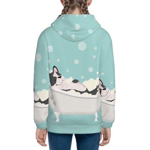 French Bulldog Taking a Bath Kid Hoodies Boys Zip Up Sweatshirts Girls Pullover with Pocket
