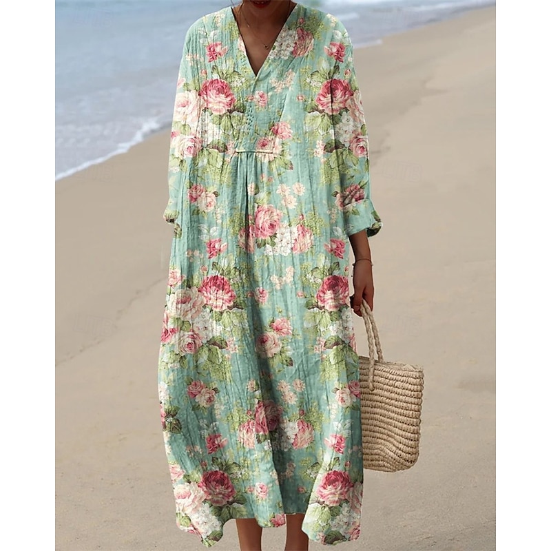 This Women's Midi Dress Casual Dress Print Dress Fashion new-age Daily Beach Weekend Regular Fit Flower Long Sleeve V Neck Yellow Light Green Pink Blue Spring Fall combines elegant design with practical functionality. Every detail has been carefully considered to ensure you get the best possible experience. The supreme construction means this product will serve you well for years to come.