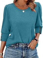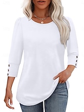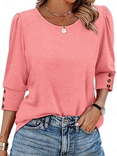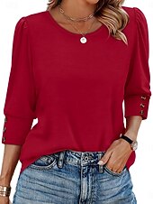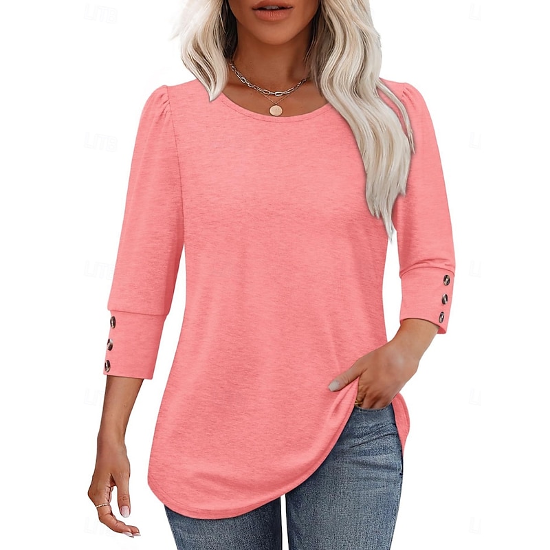 Why Choose Women's Blouse Solid Color trendy Casual 3/4 Length Sleeve Crew Neck Regular Tops Daily Buttons White Pink Red Blue Summer Spring Fall?
