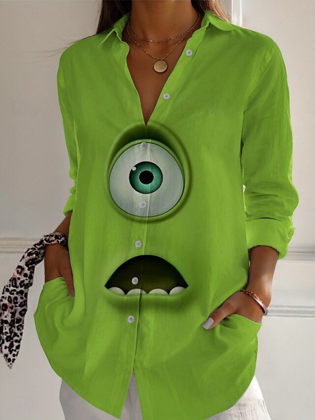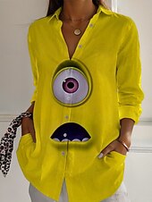 This Women's Cartoon Funny Smile Face Shirt Active Daily chic Long Sleeve Shirt Collar Regular Tops Daily Holiday Buttons Print Yellow Blue Purple Green Spring Fall combines elegant design with practical functionality. Every detail has been carefully considered to ensure you get the best possible experience. The supreme construction means this product will serve you well for years to come.