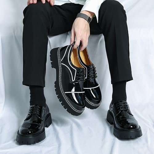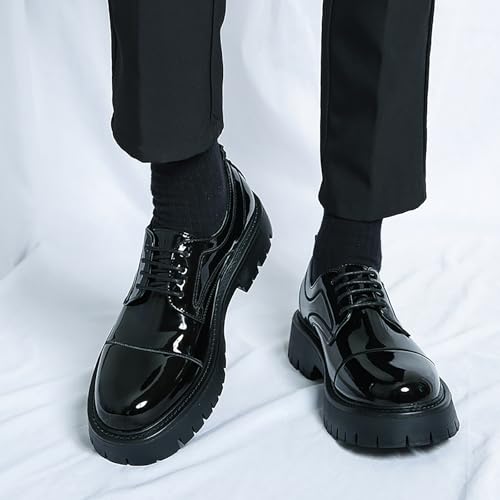 Men's Patent Leather Platform Oxfords Round Toe Lace Up Lug Sole Derby Shoes for Business Party Dress