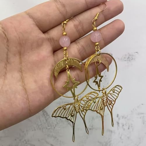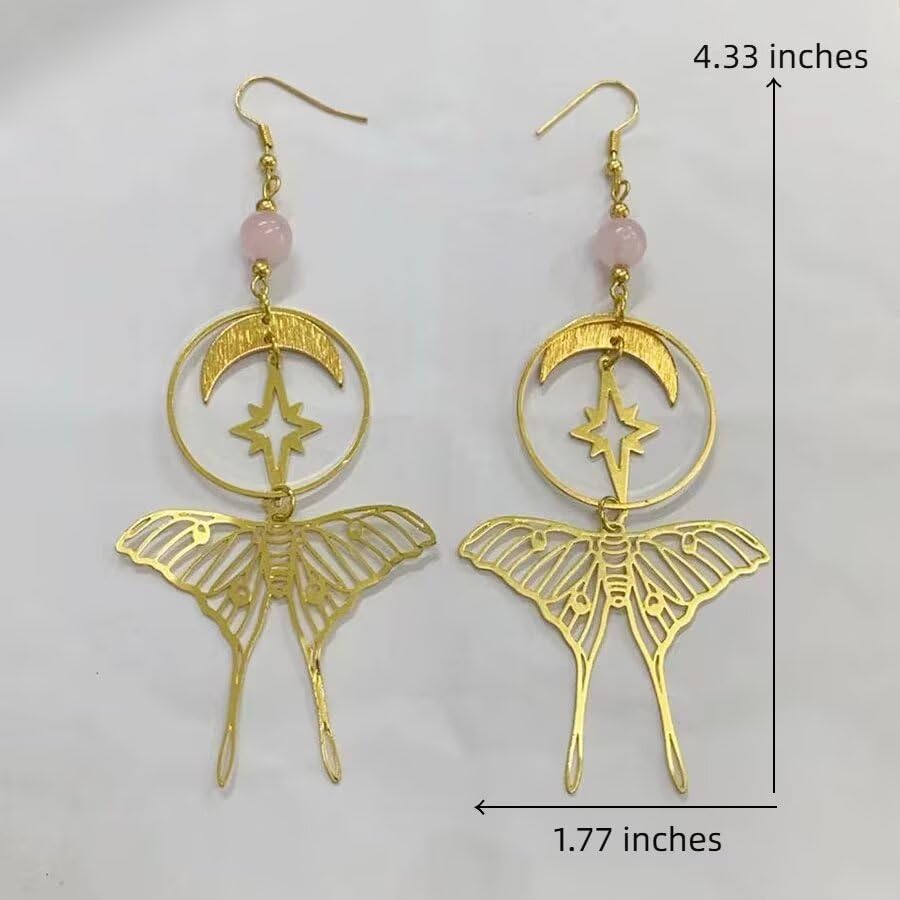 sought-after ! Gothic Vintage Butterfly Earrings, Sun and Moon Earrings for Women, Luna Moth Earrings, Long Dangle Crystal Earrings, Vintage Goth Jewelry