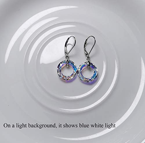925 Sterling Silver Circle Earrings with Austria Crystal Leverback Dangle Earrings Hypoallergenic Jewelry for Women Mom 5