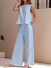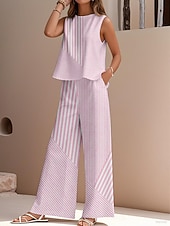 This Women's Elegant Fashion Streetwear Two Piece Sets Blouse Vest Pants Trousers Sleeveless Crew Neck Outdoor Work Casual Striped Print Vacation Daily Holiday Pink Blue Green Summer Regular Fit combines elegant design with practical functionality. Every detail has been carefully considered to ensure you get the premier possible experience. The superior construction means this product will serve you well for years to come.