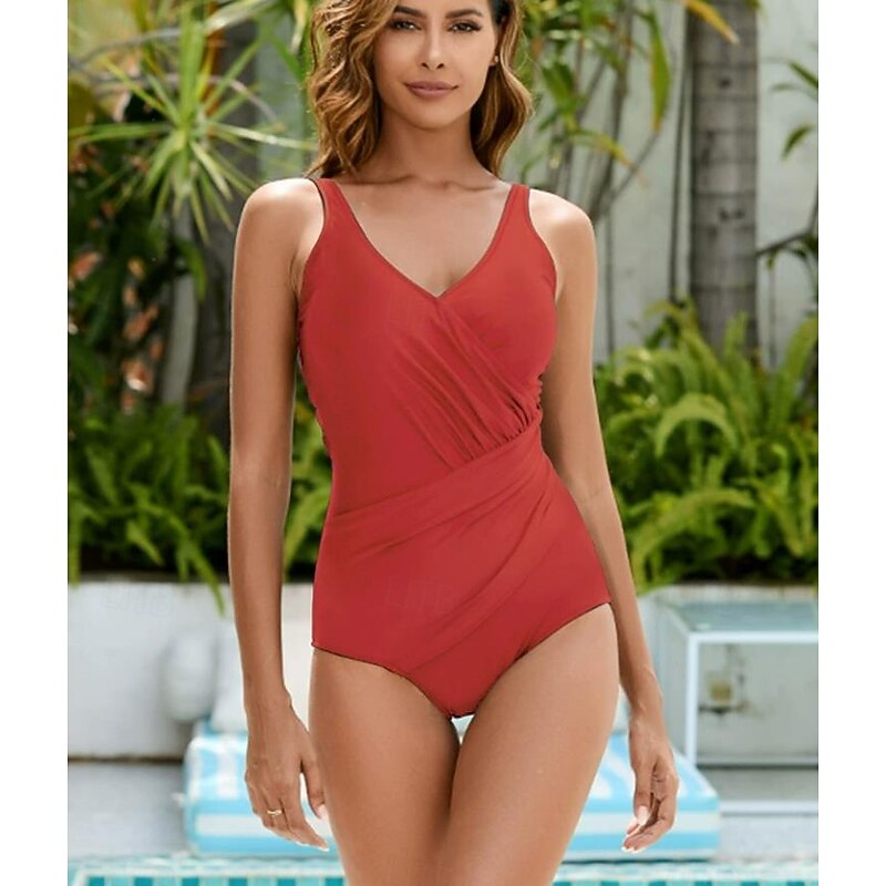 sought-after ! Women's Swimwear One Piece Monokini Swimsuit Backless Tummy Control High Waist Slim Vacation Beach Wear Solid Color V Neck Sleeveless Bathing Suits