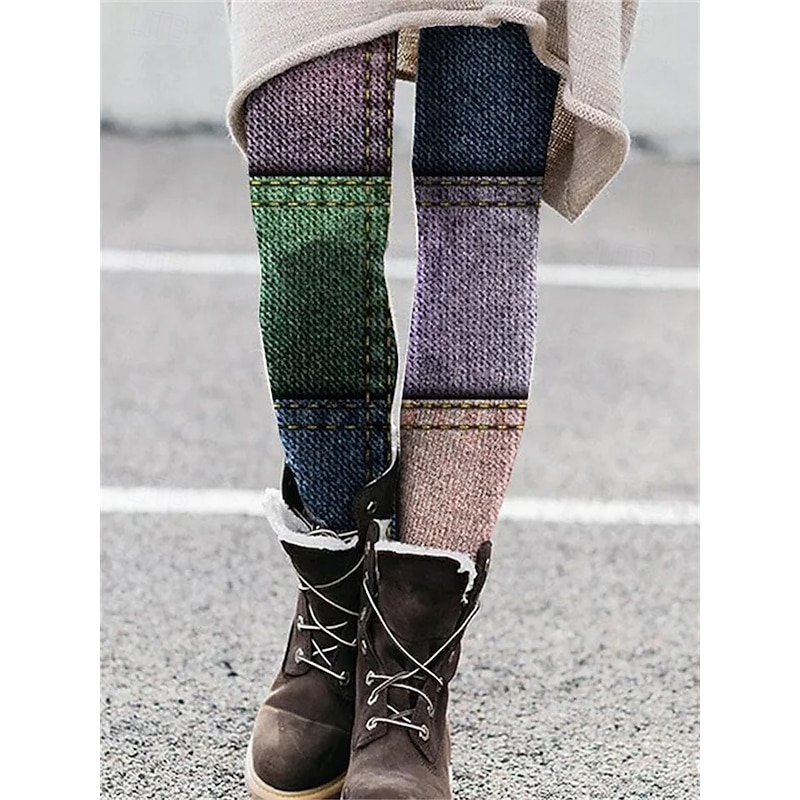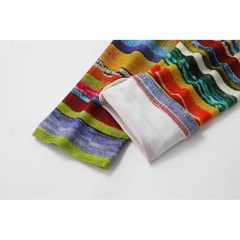 More information about Women's Pants Trousers Leggings Cozy Leggings Streetwear Casual Full Length High Waist Striped Elastic Waist Print Breathability snug Stretchy Vacation Street Daily Wear Black Grey Black 2