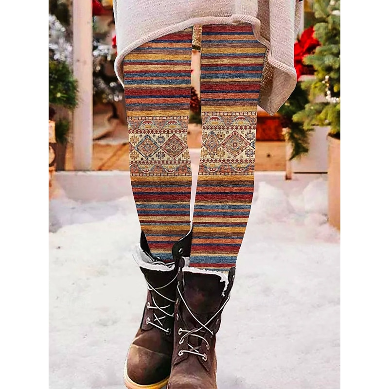 Women's Pants Trousers Leggings Cozy Leggings Streetwear Casual Full Length High Waist Striped Elastic Waist Print Breathability Comfortable Stretchy Vacation Street Daily Wear Black Grey Black 2 25