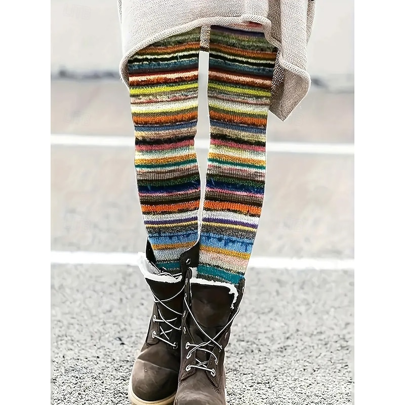 sought-after ! Women's Pants Trousers Leggings Cozy Leggings Streetwear Casual Full Length High Waist Striped Elastic Waist Print Breathability cushy Stretchy Vacation Street Daily Wear Black Grey Black 2