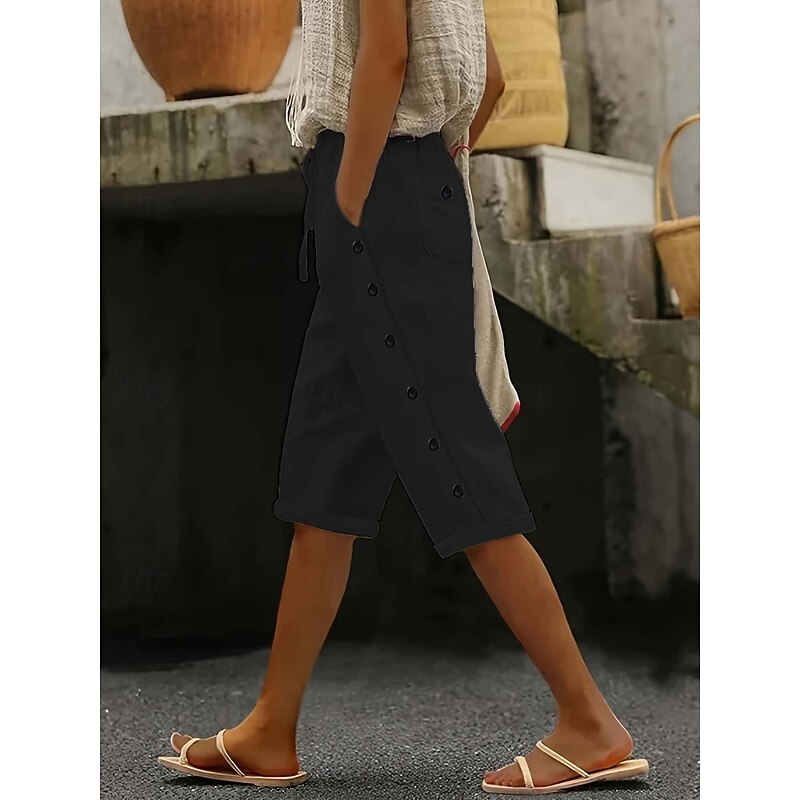 This Women's Chinos Crop Ethnic Style Basic Casual Knee Length High Waist Plain Pocket Comfy Soft relaxing Micro-elastic Outdoor Street Black White Summer Regular Fit combines elegant design with practical functionality. Every detail has been carefully considered to ensure you get the best possible experience. The superior construction means this product will serve you well for years to come.