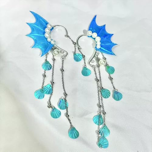 More information about 2PCS Dainty Ear Cuffs Clip-on Earring for Women, Fins Shaped Ear Cuffs Non-Piercing Earrings Rhinestone Marine Organism Tassel Ear Bone Clip without Pierced