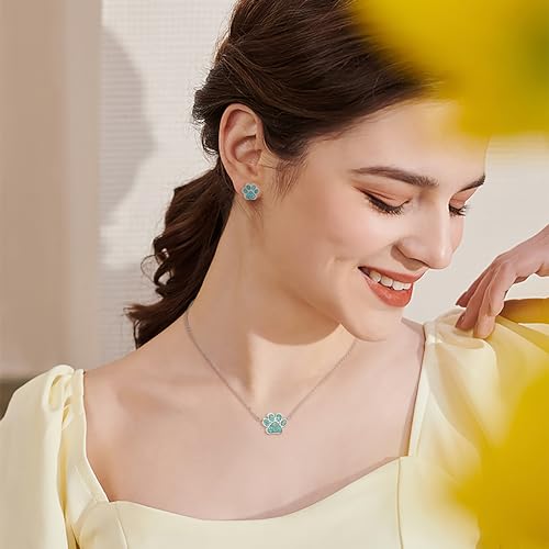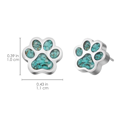 Lauren-Spencer Turquoise Dog Paw Earrings for Women Cute Small Paw Print Stud Earrings Stainless Steel Turquoise Gemstone Dog Jewelry for Women Girls Cat Dog Mom Earrings Animal Jewelry