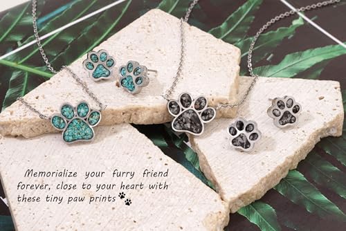 Material: Stainless SteelMetal type: Stainless SteelBack Finding: Push BackEarring design: StudGem type: Created turquoiseItem type name: Stud Earrings❤DOG PAW PRINT EARRINGS - Dainty small paw print earrings features tiny cute dog paw design stud earrings filled with green turquoise tumbled gemstones. With eye-catching and vibrant stone color, these adorable dog paw earrings are sure to make you stand out in a crowd. The tiny paw print studs serve as a reminder of the joy, comfort, and companionship our furry friends bring into our lives.❤GREEN TURQUOISE EARRINGS - Our stunning turquoise stud earrings in paw print shape are handcrafted with natural and freely crushed stones from the Earth. No two pairs are exactly alike, the earrings are uniquely yours. Simple yet dainty turquoise earrings for everyday wear and are classy to fit with every outfit.❤HYPOALLERGENIC & LIGHTWEIGHT EARRINGS - The jewelry grade stainless steel dog paw print earrings are hypoallergenic, nickel free and tarnish free, which is good for sensitive ears. Lightweight and comfortable to wear all day (and night) long. Each earring size: 0.43/11mm x 0.39/10mm❤DOG JEWELRY FOR WOMEN - We believe that every pawprint tells a story and every pet holds a special place in our hearts. These paw print stud earrings are thoughtful gifts for dog moms, pet dog cat animal lovers, or anyone who has lost a furry friend. It serves as a heartfelt reminder of the unconditional love and joy that pets bring into our lives.❤PROUDLY AMERICAN OWNED - We are an American owned and operated company(since 1984)! Any concerns about the order will be answered within 24 hours. We want you to be a customer for life! Perfect for everyday use. top-grade materials and excellent craftsmanship ensure long-lasting durability.
