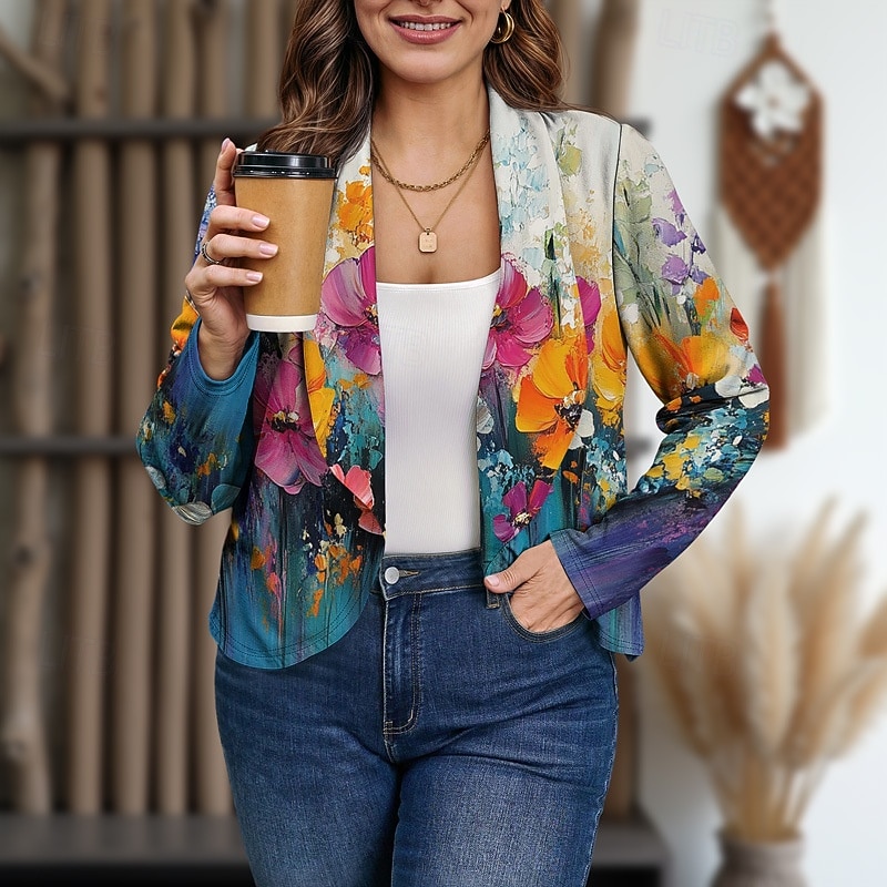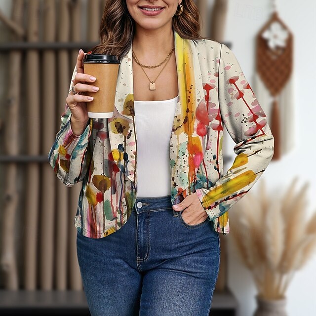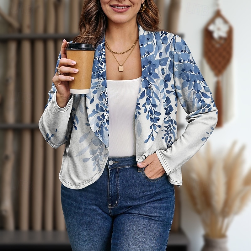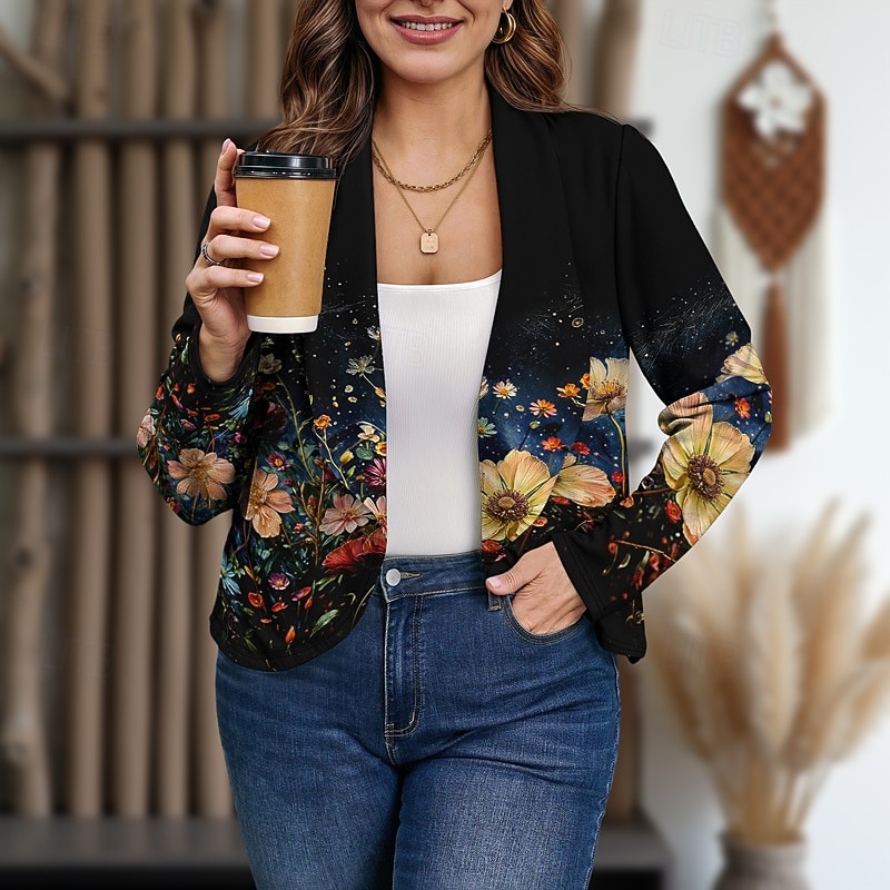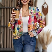 sought-after ! Women's Blazer cushy Open Front Elegant Fashion Glamorous & Dramatic Retro Floral Vacation Home Office Work Short Shawl Collar Regular Fit Long Sleeve Outerwear Black White Red Spring Fall