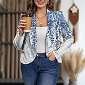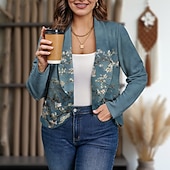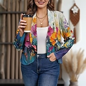 More information about Women's Blazer snug Open Front Elegant Fashion Glamorous & Dramatic Retro Floral Vacation Home Office Work Short Shawl Collar Regular Fit Long Sleeve Outerwear Black White Red Spring Fall