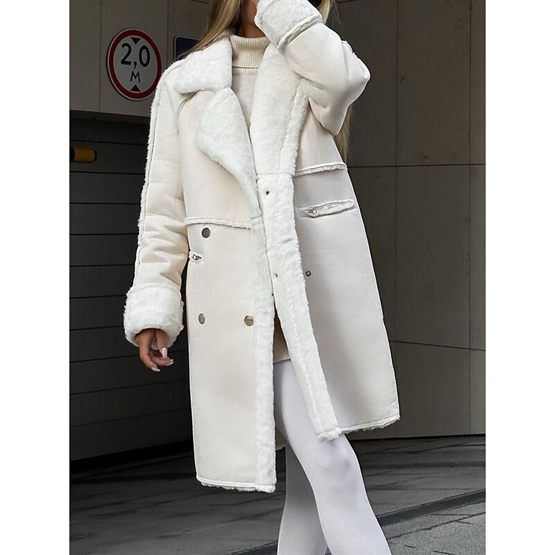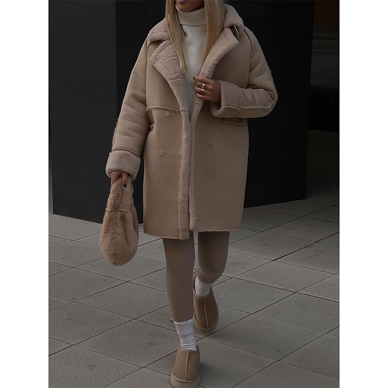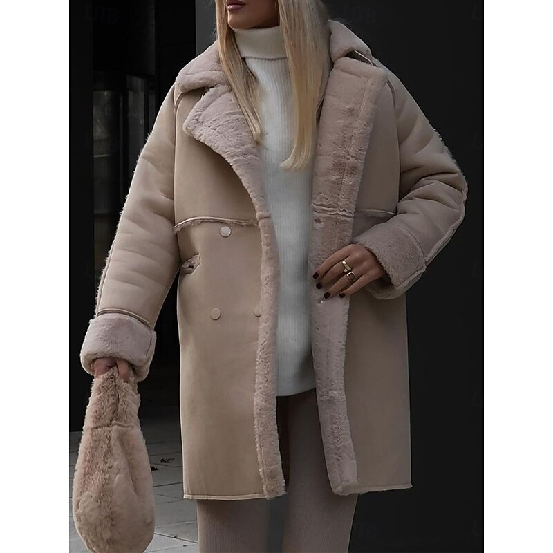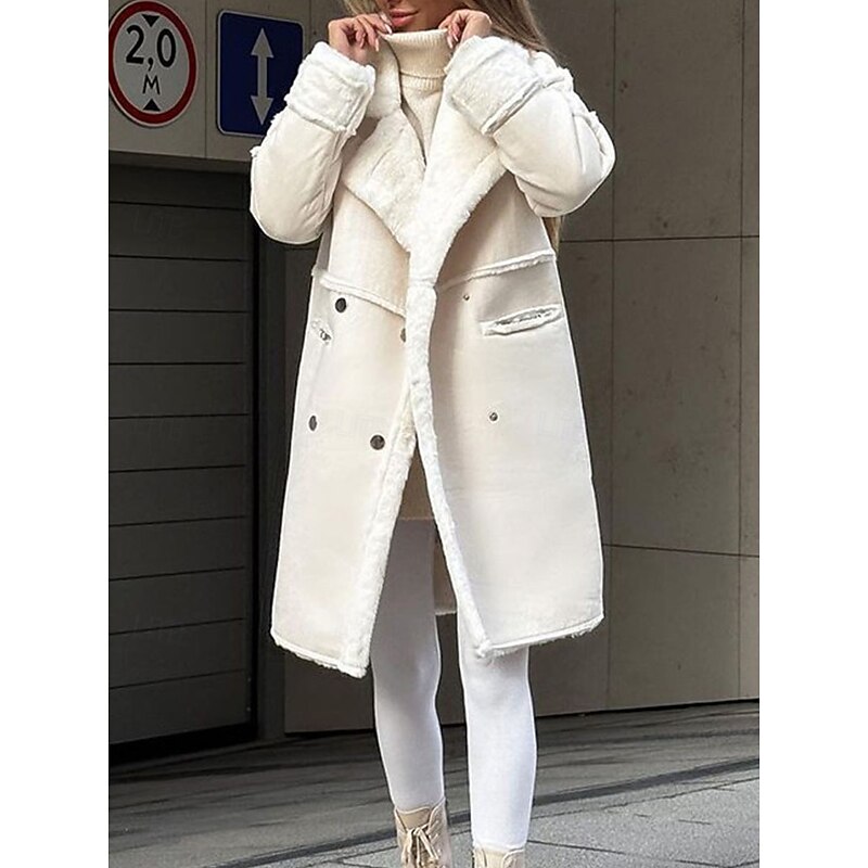 More information about Women's Fleece Jacket Teddy Coat cozy Breathable Pocket Fleece Lined Casual Plain Vacation Street Daily Wear Going out Single Breasted Regular Turndown Regular Fit Long Sleeve Outerwear White Khaki