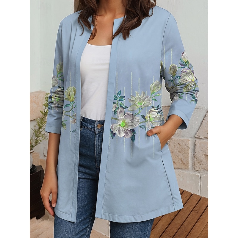sought-after ! Women's Blazer Work Casual Spring Fall Winter Regular Coat Regular Fit Breathable Elegant Artistic Style Boho Vintage Jacket Long Sleeve Floral Pocket Print Dusty Rose Dusty Blue Green
