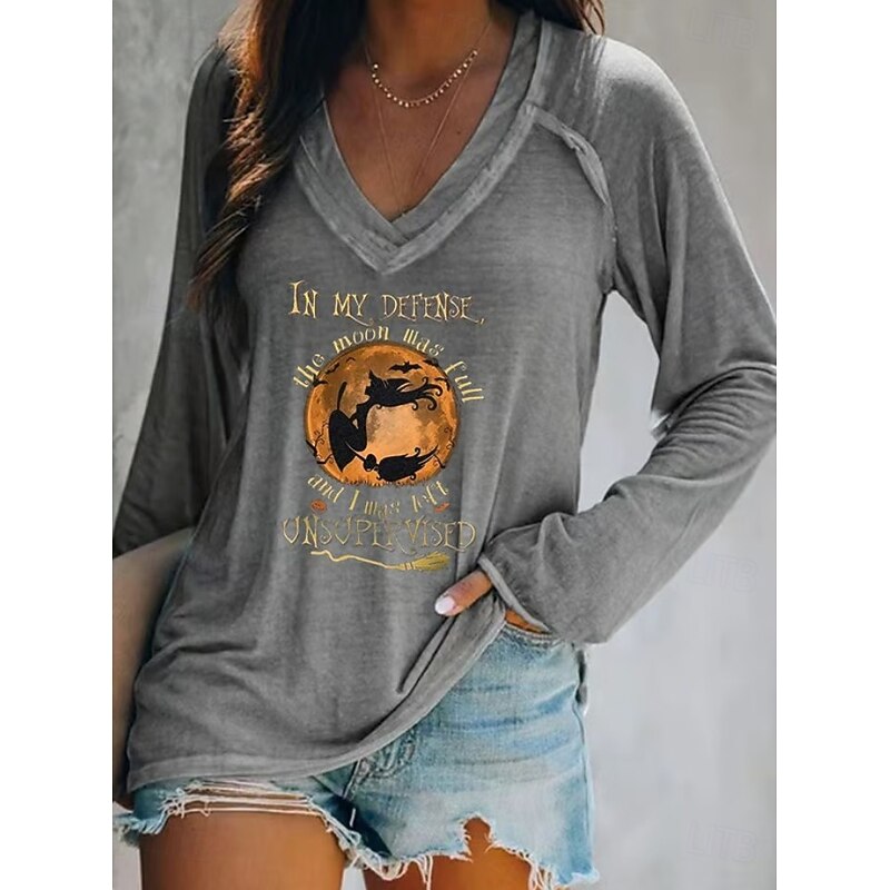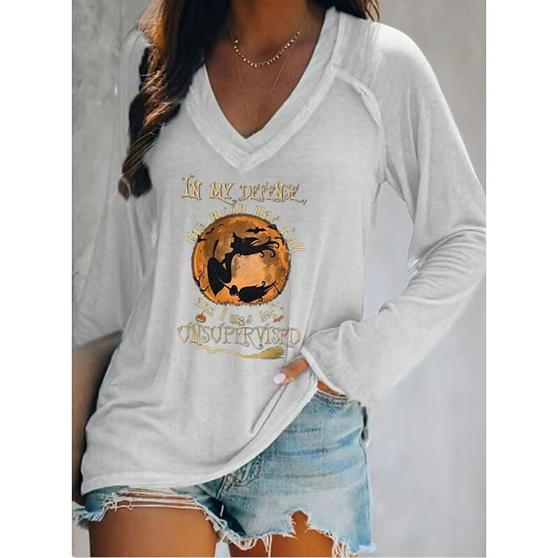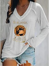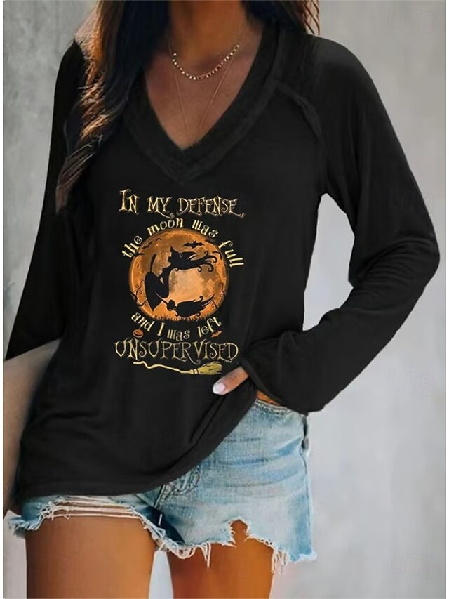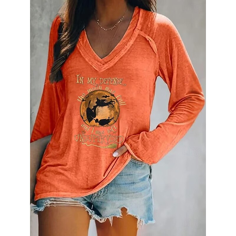 This Halloween Women's T shirt Witch Long Sleeve V Neck Long Sleeve Graphic Casual Letter Vintage chic Western Tops Daily Weekend Vacation Wear Print Black White Pink Red Blue Spring Fall Prefall combines elegant design with practical functionality. Every detail has been carefully considered to ensure you get the best possible experience. The supreme construction means this product will serve you well for years to come.