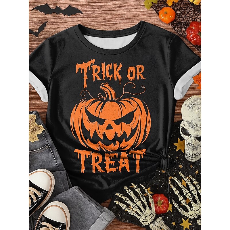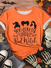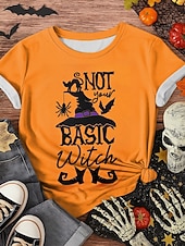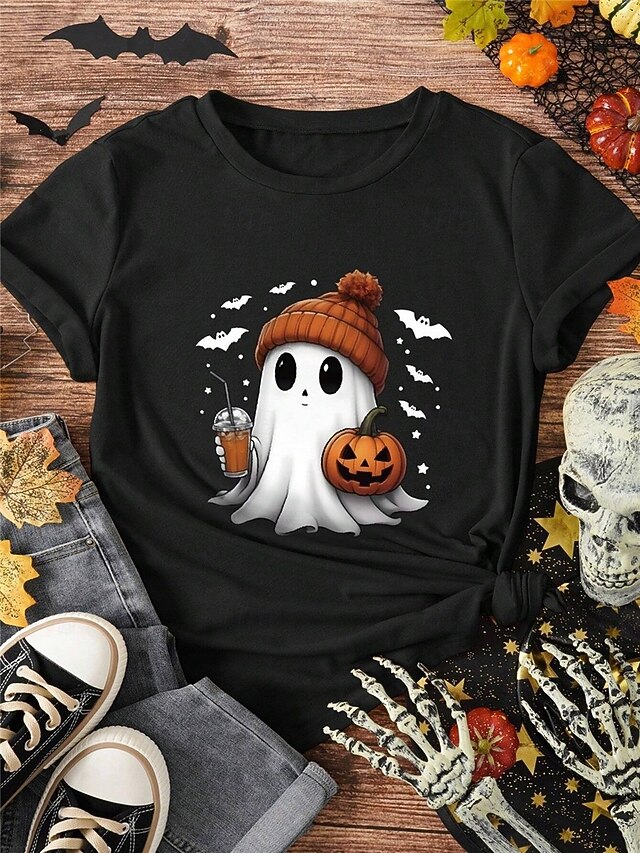 More information about Halloween Women's T shirt Ghost Graphic Vintage Casual Short Sleeve Crew Neck Regular Tops Daily Weekend Print Black Yellow Orange Gold Summer Spring Fall