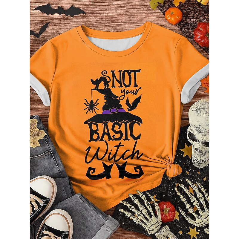 sought-after ! Halloween Women's T shirt Ghost Graphic Vintage Casual Short Sleeve Crew Neck Regular Tops Daily Weekend Print Black Yellow Orange Gold Summer Spring Fall
