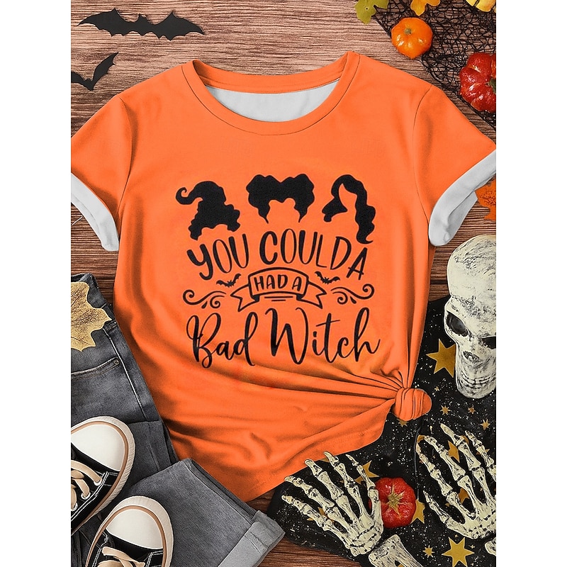 Halloween Women's T shirt Ghost Graphic Vintage Casual Short Sleeve Crew Neck Regular Tops Daily Weekend Print Black Yellow Orange Gold Summer Spring Fall 11