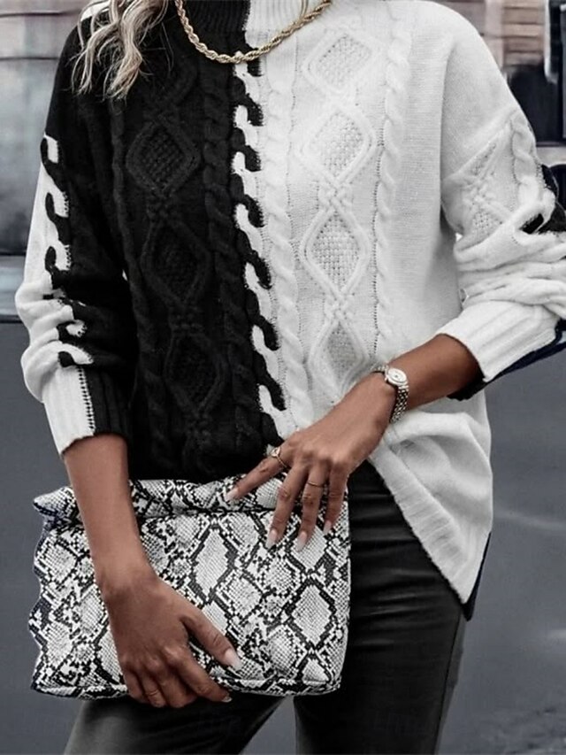 sought-after ! Women's Sweater Casual supple Color Block Ribbed Mock Neck Knitted Long Sleeve Regular Tops Knit Outdoor Daily Weekend Black Red Fall Winter