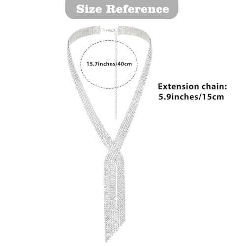 Item display length: 13 inchesItem width: 1.5 inchesMaterial: RhinestoneMetal type: AlloyClasp type: LobsterChain type: TennisMaterial: Made of solid rhinestones and alloys.The combination of all will make you more gorgeous and elegant.Necklace size: Length 15.7inches/40cm with 5.9inches/15cm extension chain. It is suitable for most people.Stylish Design:A whole necklace with all diamonds, cross design at the bottom with long tassels, overall atmosphere shiny,it look more stylish and designed.Ideal for Women: Gorgeous, stylish and charming, catching one's eyes anywhere, is a good choice for the wedding, parties and daily wear etc.Whether you're treating yourself or surprising someone special, this exquisite rhinestone necklaces makes for a thoughtful and fashionable surprise option. Perfect for everyday use. top-grade materials and excellent craftsmanship ensure long-lasting durability.