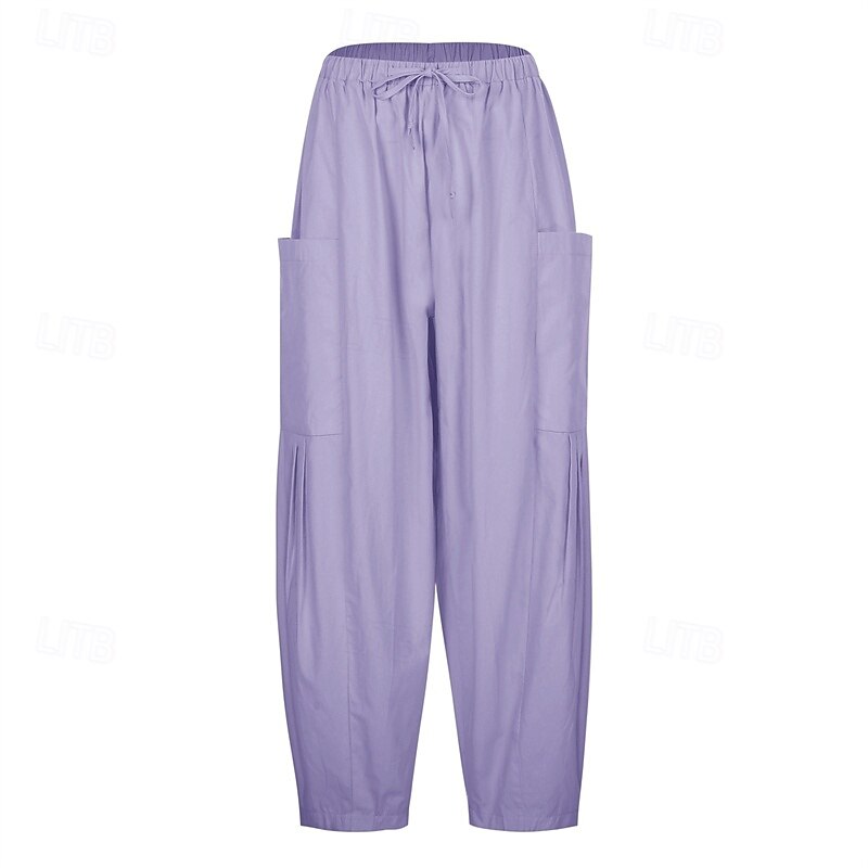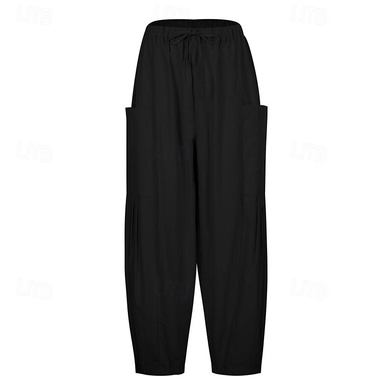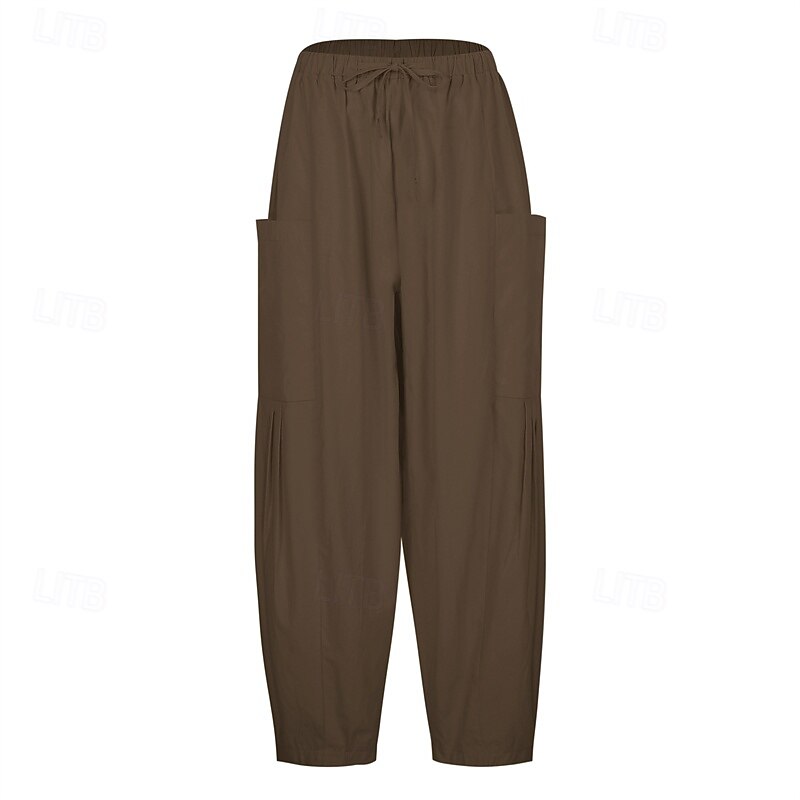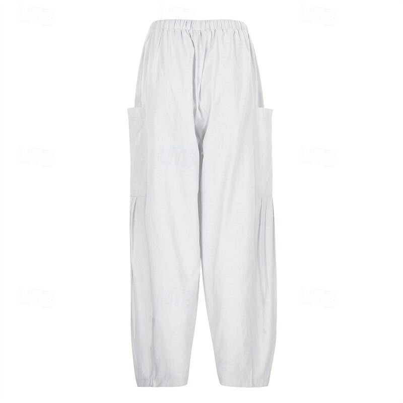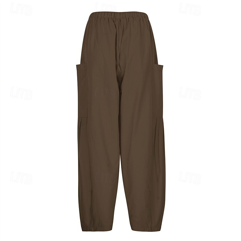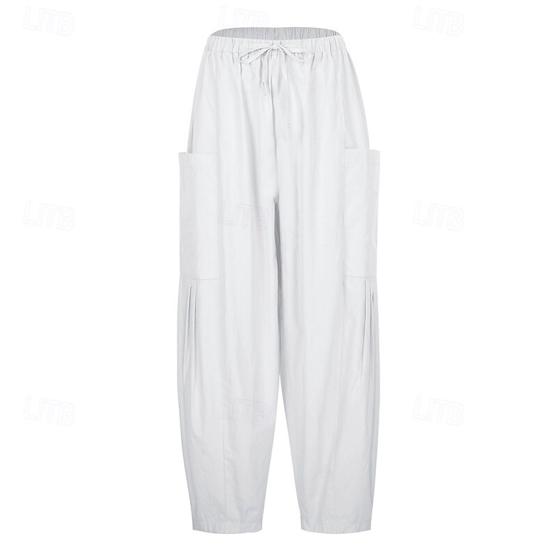 Women's Wide Leg Pants Trousers Vacation Fashion Full Length Mid Waist Plain Elastic Waist Breathable tender Micro-elastic Street Daily Wear Going out Dark Brown Black White Army Green Summer
