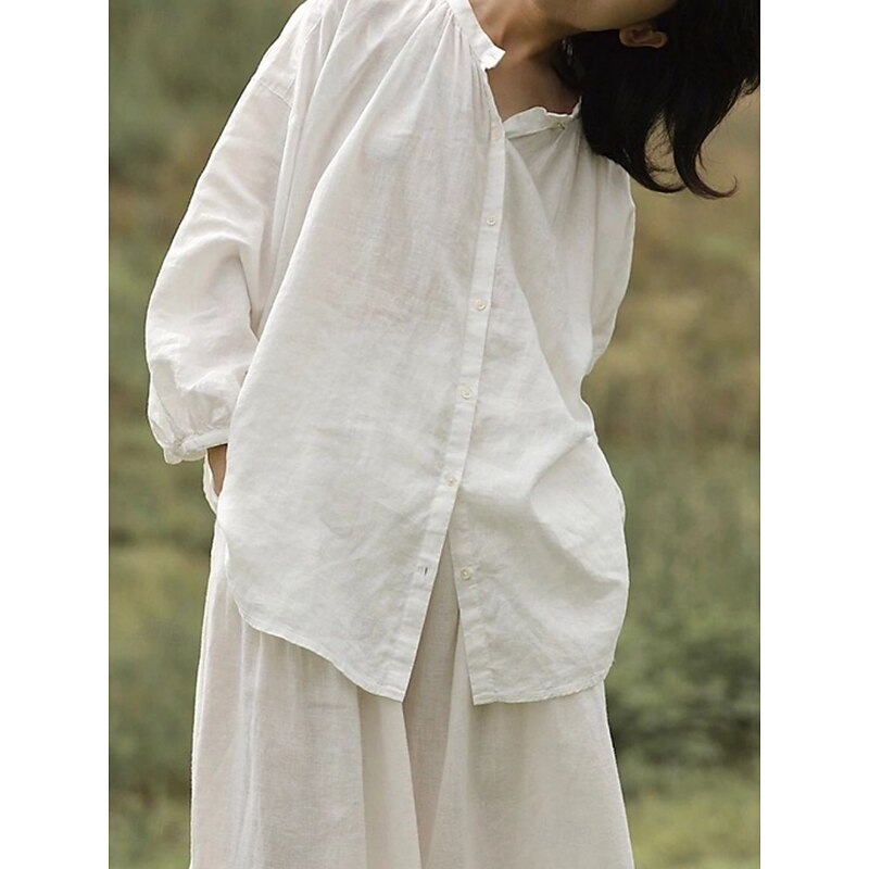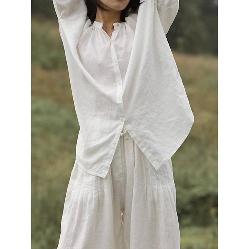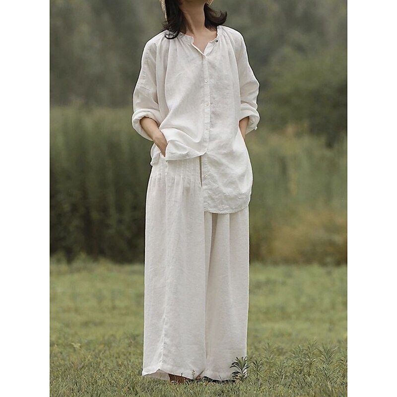 More information about Women's Elegant Fashion Streetwear Cotton Linen Sets Long Sleeve Shirt Collar Plain Outdoor Work Casual White Summer Regular Fit