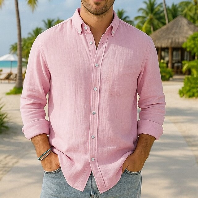 More information about Men's Cotton Linen Shirt Solid / Plain Color Vacation Black White Pink Dark Navy Long Sleeve Lapel Clothing Apparel Button-Down