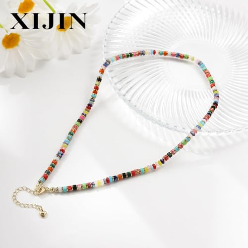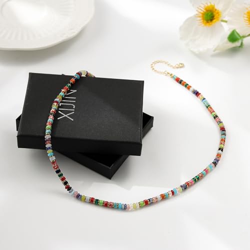 XIJIN Natural Stone Bead Necklace for Women Handmade Boho Multicolor Beaded Choker Necklace Gift for Her