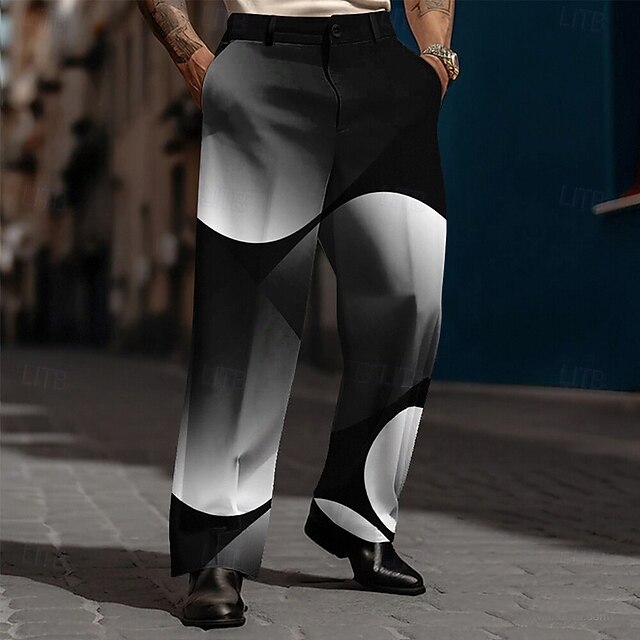sought-after ! Men's Geometric Abstract Gradient Color Trousers Dress Pants Suit Pants Mid Waist Casual Dailywear Holiday Streetwear Relaxed Fit Flat Front Dress Pants with Side Pockets Spring Fall 3D Print Yellow