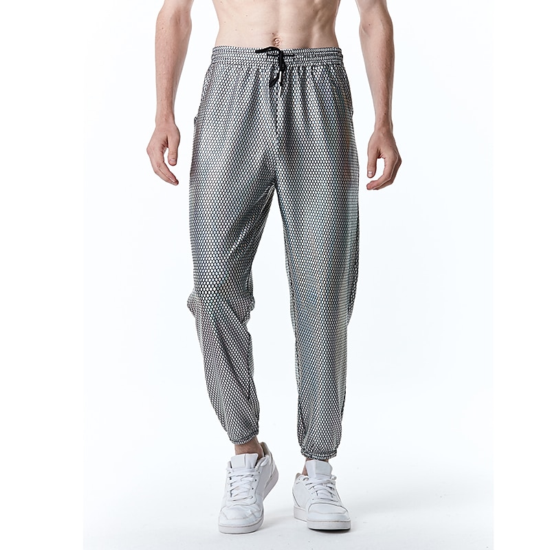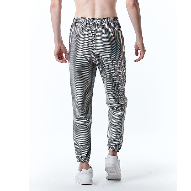 sought-after ! Men's Joggers Trousers Chinos Casual Pants Sequin Pants Drawstring Elastic Waist Shiny Metallic Solid Color Nightclub Disco Lights Casual Hip Hop Silver Black