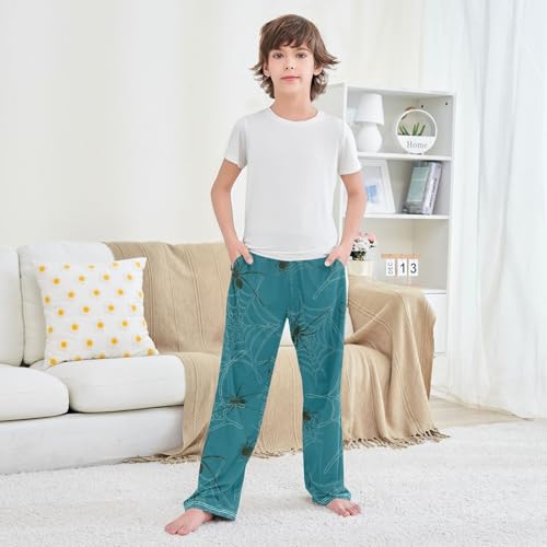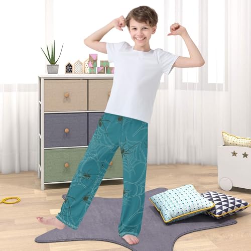 Spider on Blue Boys Pants Boys Athletic Pants Long Pant for Boywith Pockets Wide-Leg Size 6-14Y 6