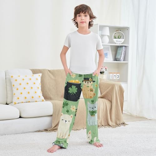 Cat Shamrock Boys Long Pants tender Trousers Elastic Waist Kids Lounge Bottoms with Pockets S-XL