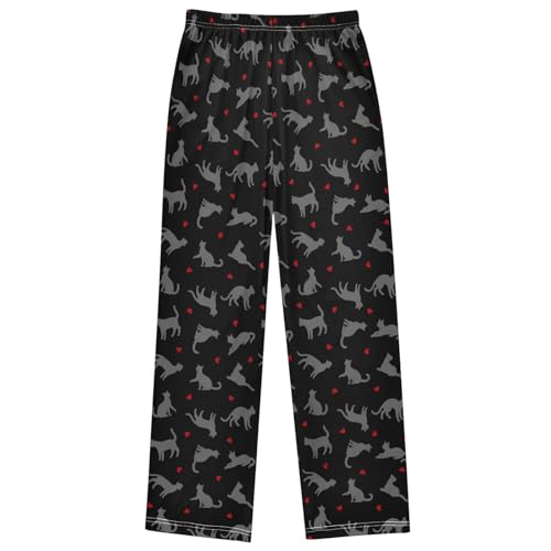 Boy's Lounge Pants Cats Kittens Red Hearts Kids Jogger Pants Elastic Waist Long Bottoms with Pockets 6-14 Years 6