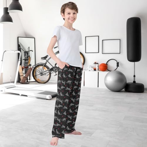 Boy's Lounge Pants Cats Kittens Red Hearts Kids Jogger Pants Elastic Waist Long Bottoms with Pockets 6-14 Years 7