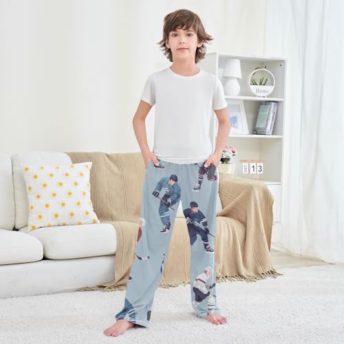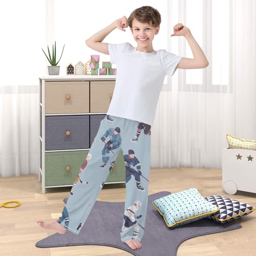 Ice Hockey Boys Long Pants Soft Trousers Elastic Waist Kids Lounge Bottoms with Pockets S-XL 4