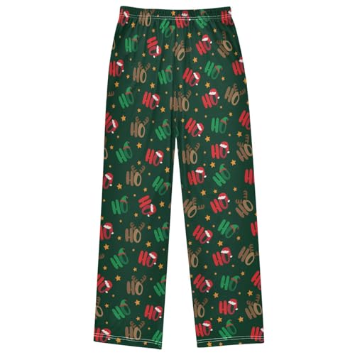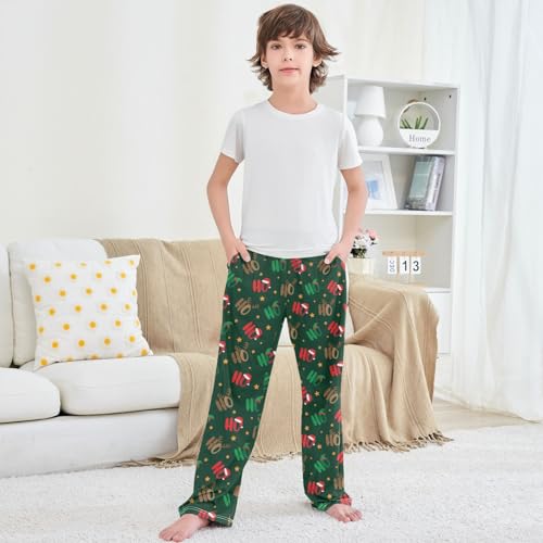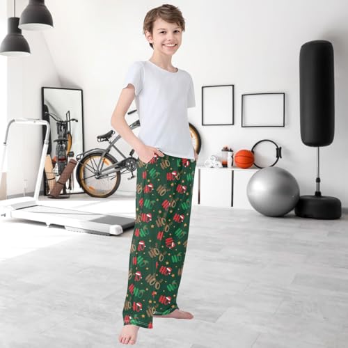 Boy's Lounge Pants Ho Santa Hat Deer Antler Elf Kids Jogger Pants Elastic Waist Long Bottoms with Pockets 6-14 Years