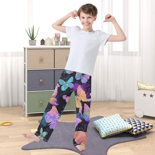 Galaxy Butterfly Pattern Boys Long Pants tender Trousers Elastic Waist Kids Lounge Bottoms with Pockets S-XL