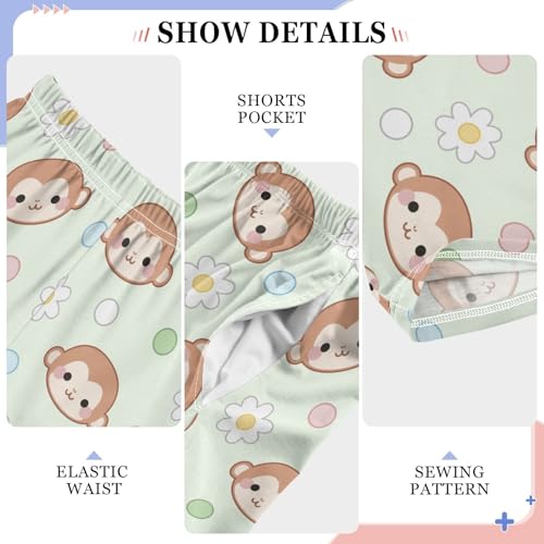 Boys' Pants Monkey Face Flower Dot Green Long Bottoms Jogger Pants Elastic Waist Trousers with Pockets S-XL