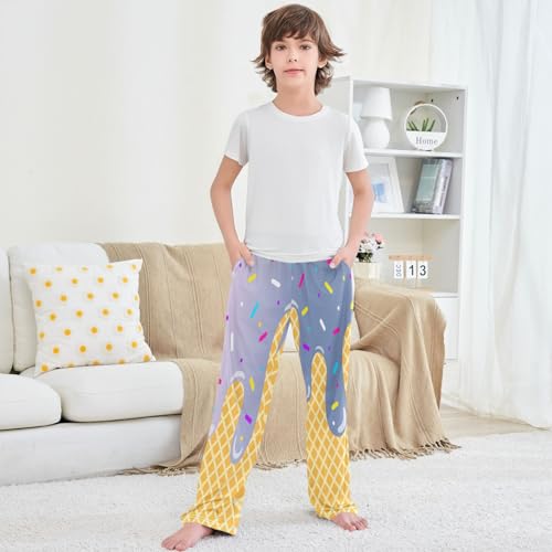 Boy's Pants Purple Blue Ice Cream Jogger Pants Elastic Waist Long Bottoms Trousers with Pockets 6-14 Years