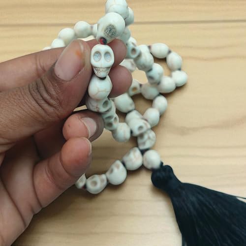 Kali Mund Mala Necklace Mahakali Rosary Carved Skull Mala (54+1 Beads, Weight 60 Gram, Circumference 66 CM) Prayer Skeleton Mala Tantra Mantra Kali sadhana Decor Yoga Healing Meditation Halloween