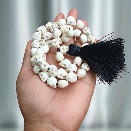 Material: StoneMetal type: NoChain type: Mund MalaGem type: No GemstoneItem type name: Stone Mund MalaKali Mund Mala Necklace Mahakali Rosary Carved Skull Mala 54+1 Beads, Weight: 60 Gram, Circumference: 66 centimeterThe term mund refers to the human skull, symbolizing the ultimate reality of life and death, while mala means a garland or string of beads.The Mund Mala is typically made of 108 beads, which are used for counting repetitions of mantras or prayers during devotion to Maa Kali.The beads of the Mund Mala are often made from Rudraksha seeds, which are considered sacred in Hinduism, or they may be made from other materials such as wood or bone.The centerpiece of the Mund Mala is often a larger bead or pendant representing Maa Kali or a symbolic representation of the goddess. outstanding for everyday use. top-grade materials and excellent craftsmanship ensure long-lasting durability.