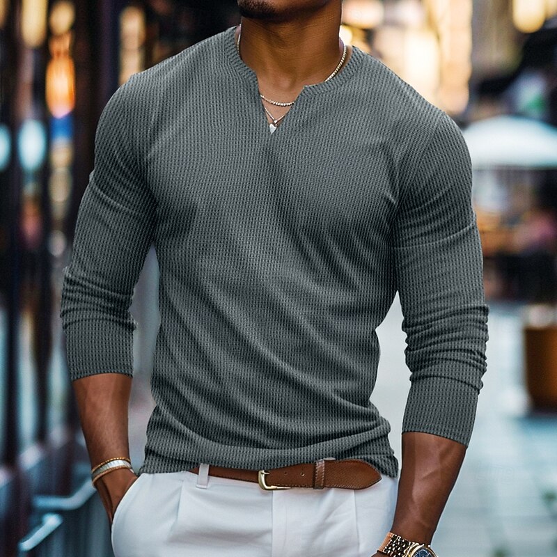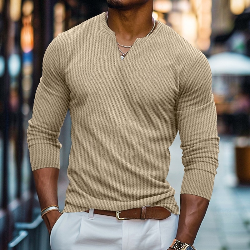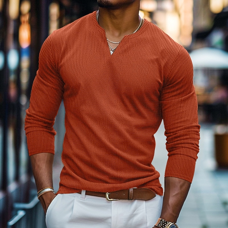 Men's Waffle Shirt V Neck Tee Tee Top Long Sleeve Shirt Long Sleeve V Neck Spring & Fall Solid Color Daily Casual Street Style V Neck Outdoor Street Causal Black White Orange Top Tee for Men