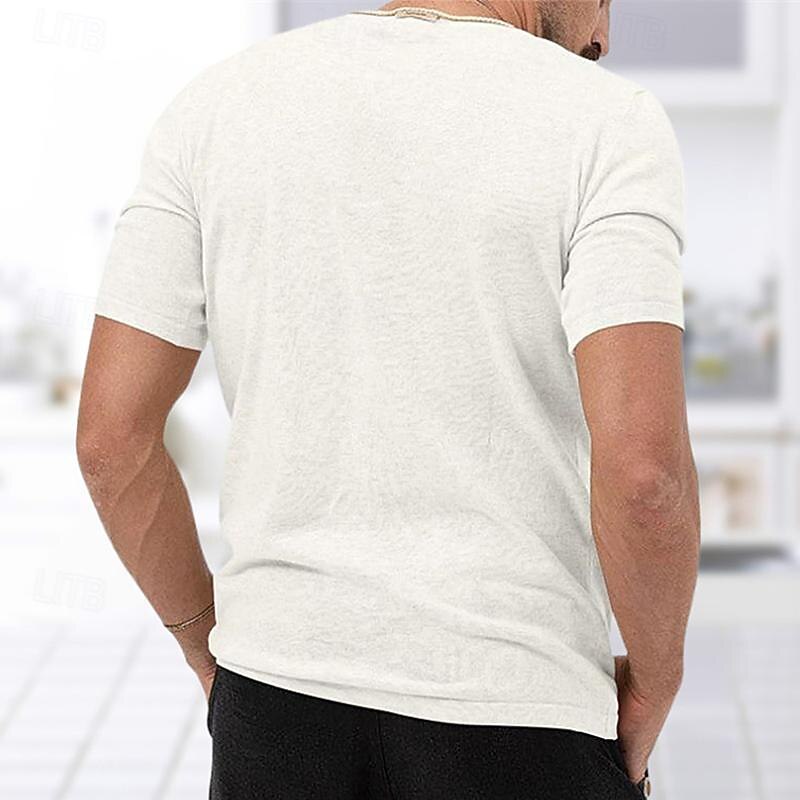 Highlights [Fabric] : This Men's T-shirt combines comfort and durability, crafted from a breathable polyester fabric. The material offers micro-elasticity, ensuring ease of movement and maintaining its shape. [Fit] : Designed in a regular fit, this T-shirt provides a flattering silhouette for various body types. Its vintage V-neck complements the overall basic yet designer style, making it an excellent choice for those who appreciate understated elegance. [Design Highlights] : Featuring a plain pattern, this T-shirt showcases a knitted texture that adds a subtle touch of sophistication. The short sleeves enhance its practicality for warm weather, while the straight hemline offers a polished finish. [Occasions] : Ideal for an array of occasions, this versatile T-shirt suits vacation settings, streetwear, casual daily outings, and more. Its timeless light gray color makes it an adaptable piece for any wardrobe, from relaxed weekends to social gatherings. [Size Range] : Available in sizes M, L, XL, XXL, and 3XL, this T-shirt caters to adults seeking contemporary, comfortable, and versatile clothing options.