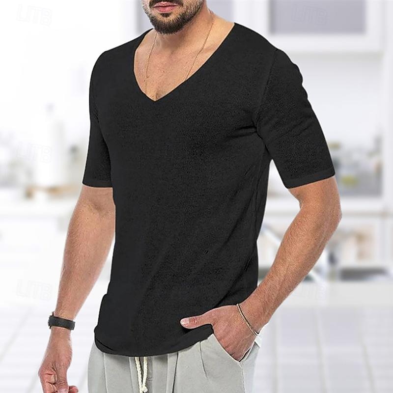 Men's T Shirt Tee Knit Tee Tee Top Short Sleeves V Neck Summer Plain Fashion Designer Basic Knitting Vacation Street Going out Black White Grey Top Tee for Men