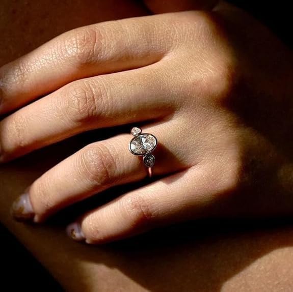 • DESIGN FEATURES: charming oval cut lab-created diamond engagement ring with an elegant bezel setting that securely holds the center stone